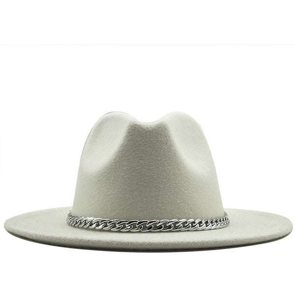White Panama Hat With Gold Chain Belt