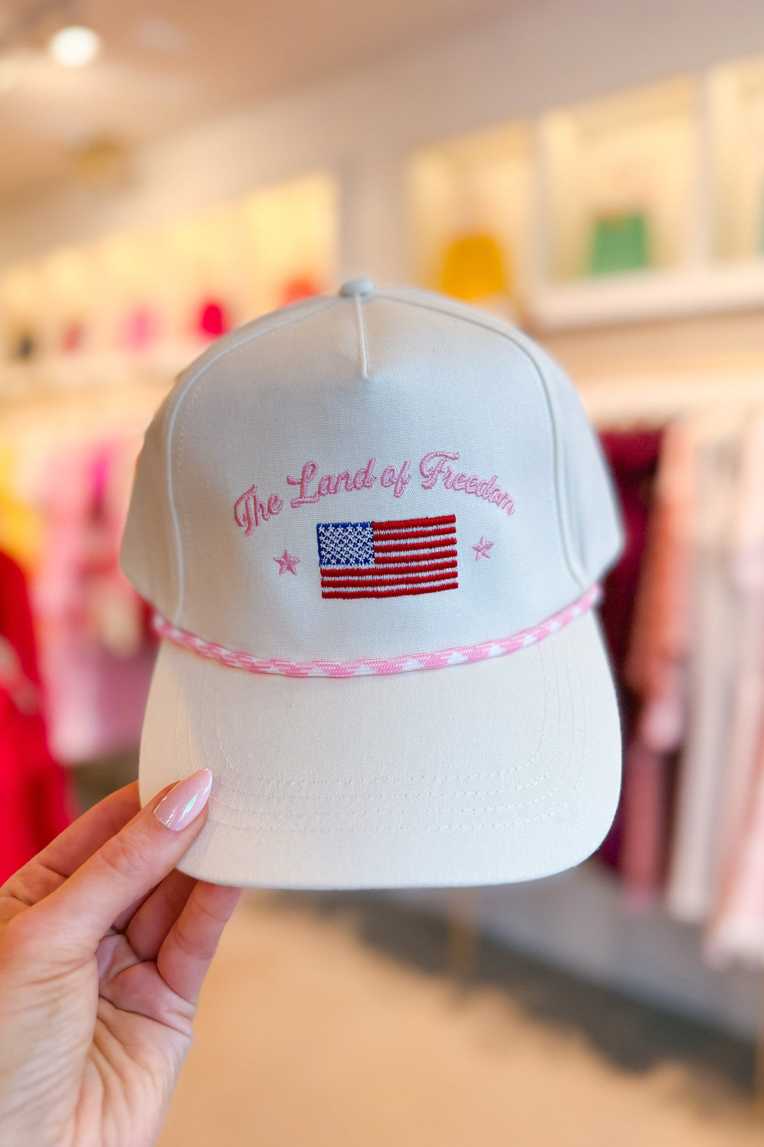 The Land Of Freedom Pink Embroidered Trucker Hat