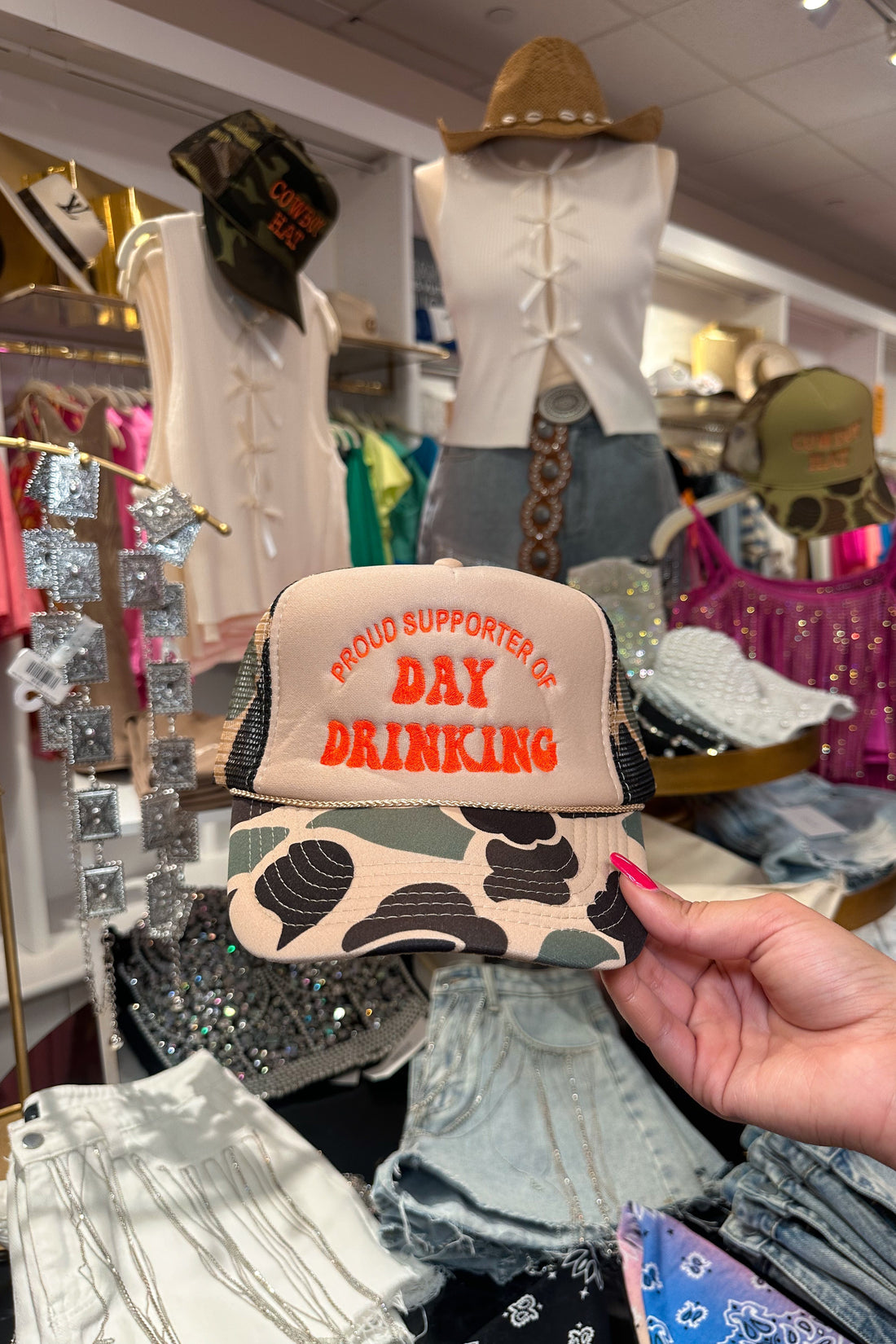 Camo Proud Supporter of Day Drinking Trucker Hat
