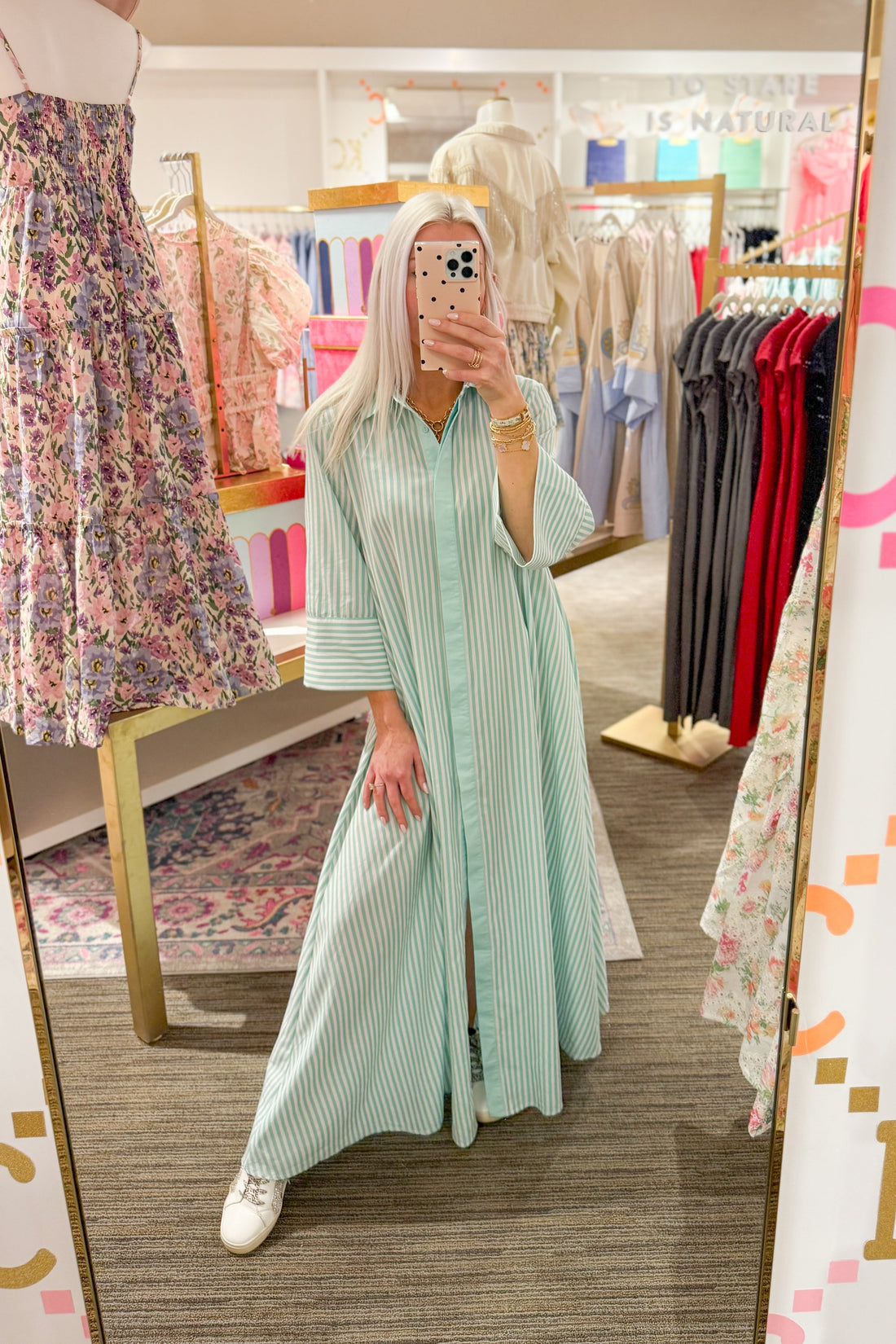 Green Striped Maxi Shirt Dress