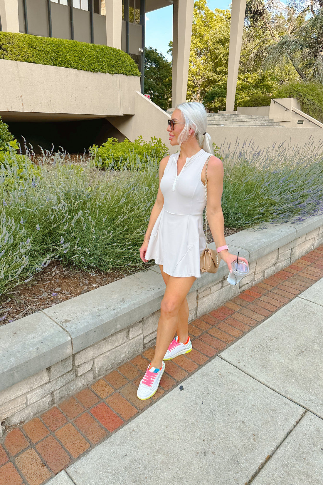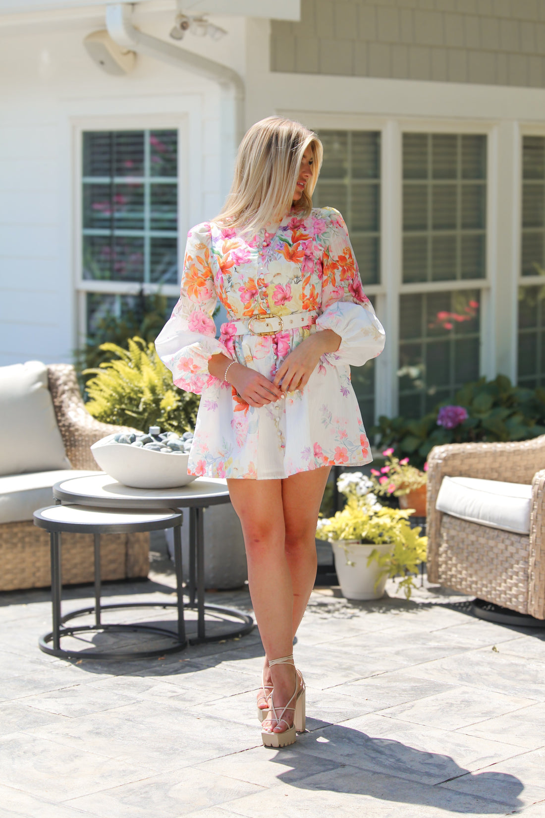 Pink Floral Ruffle Cut Out Athletic Mini Dress