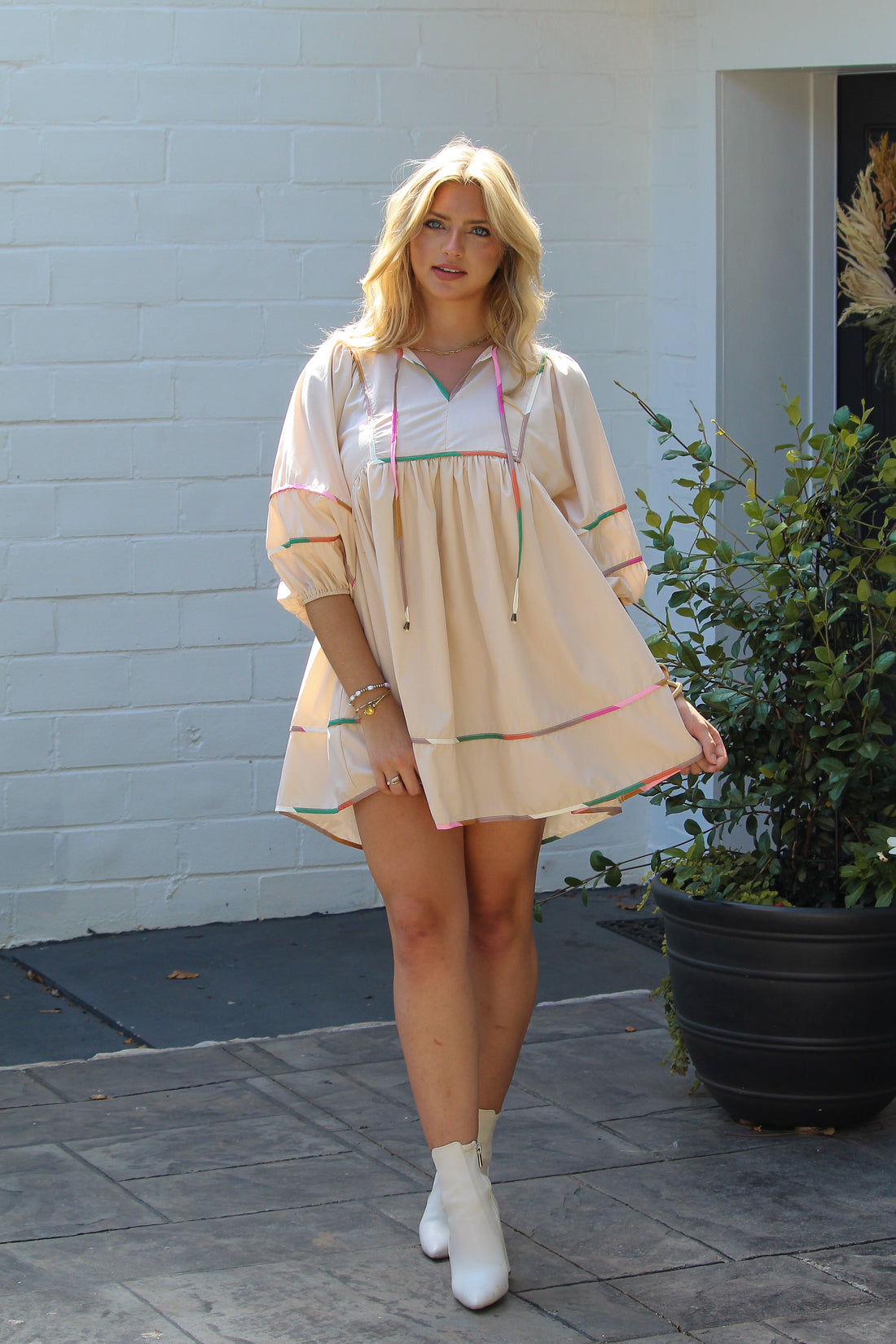Apple Orchard Multi Stripe Babydoll Short Sleeve Dress