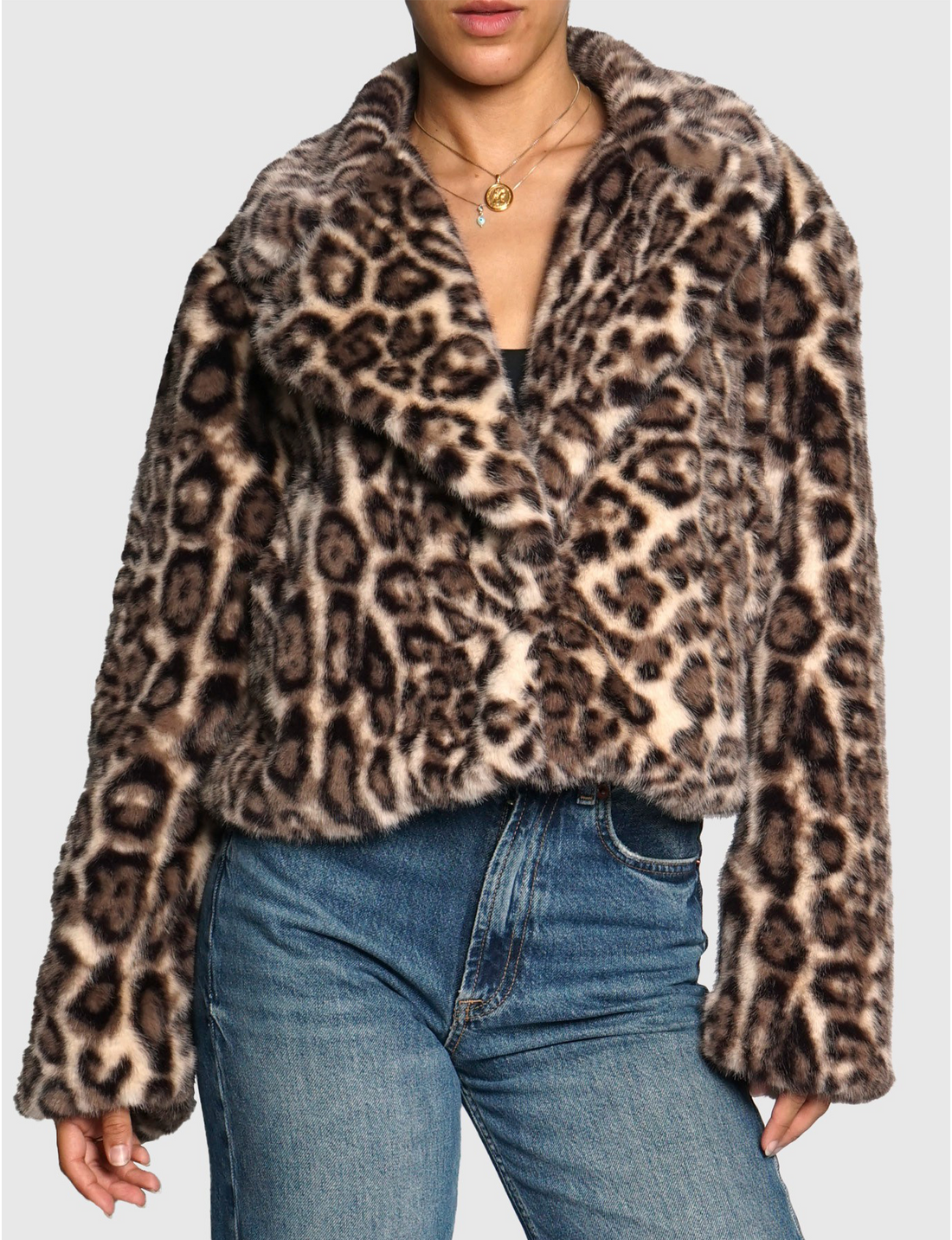 Leopard Short Faux Fur Jacket, Leopard