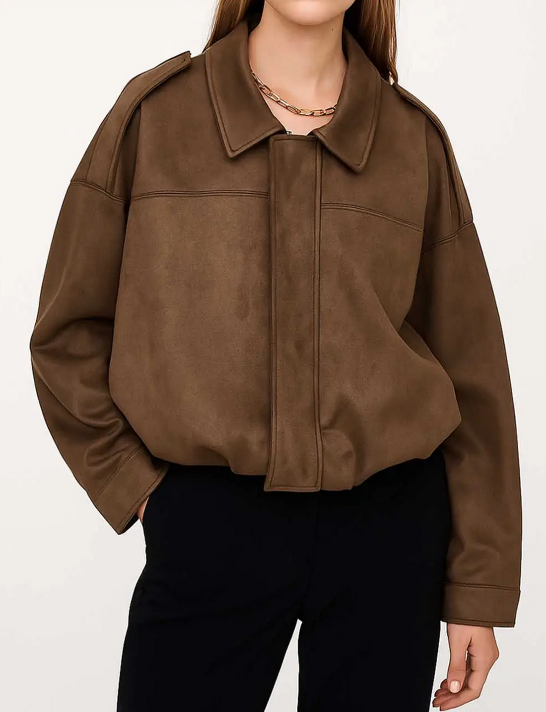 Faux Suede Bomber Jacket, Coffee