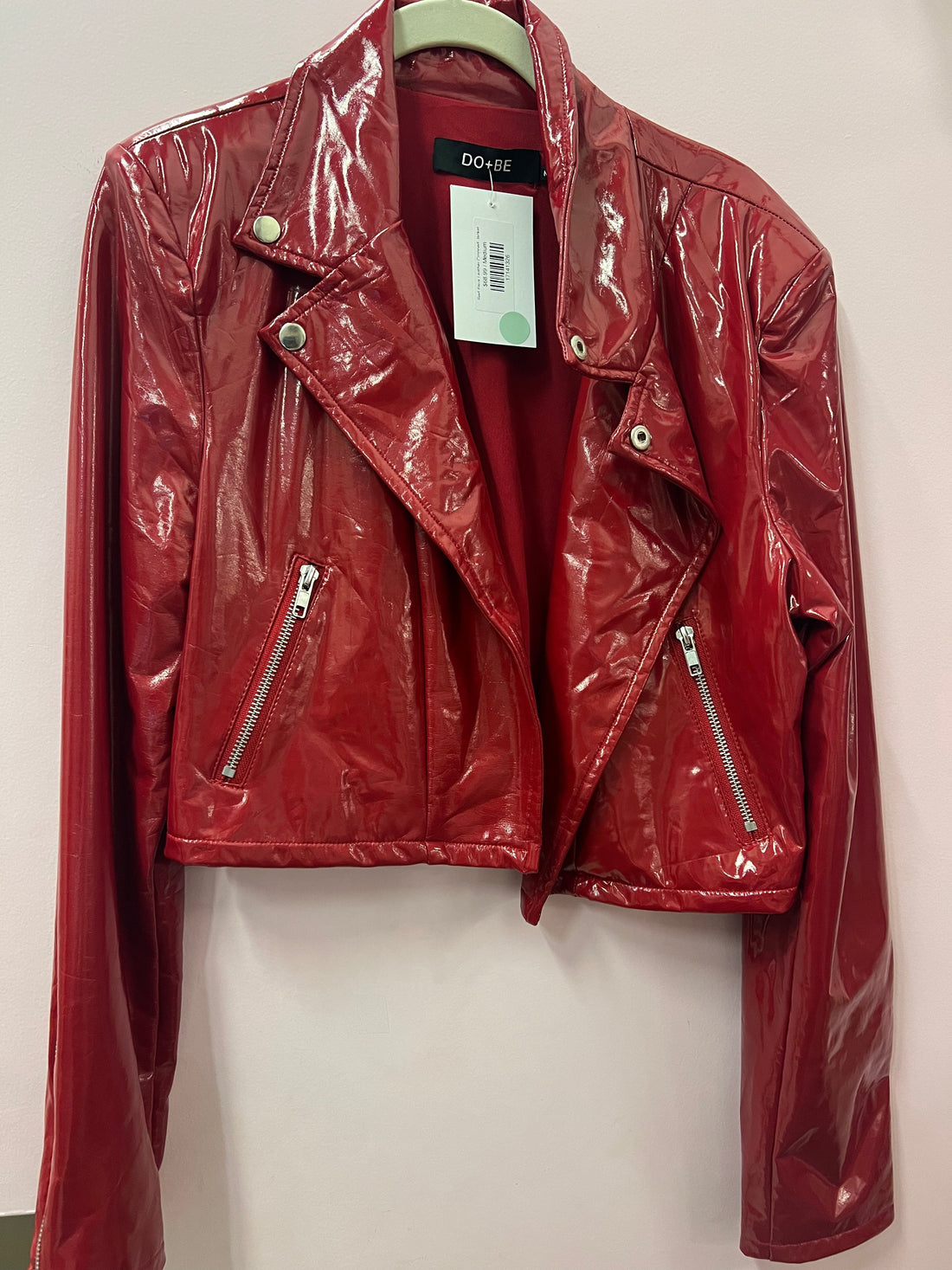 Red Faux Leather Cropped Jacket