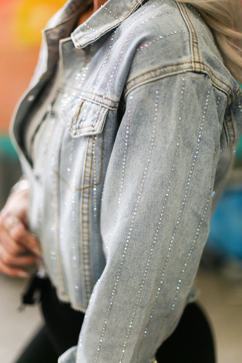April Rhinestone Detail Denim Jacket