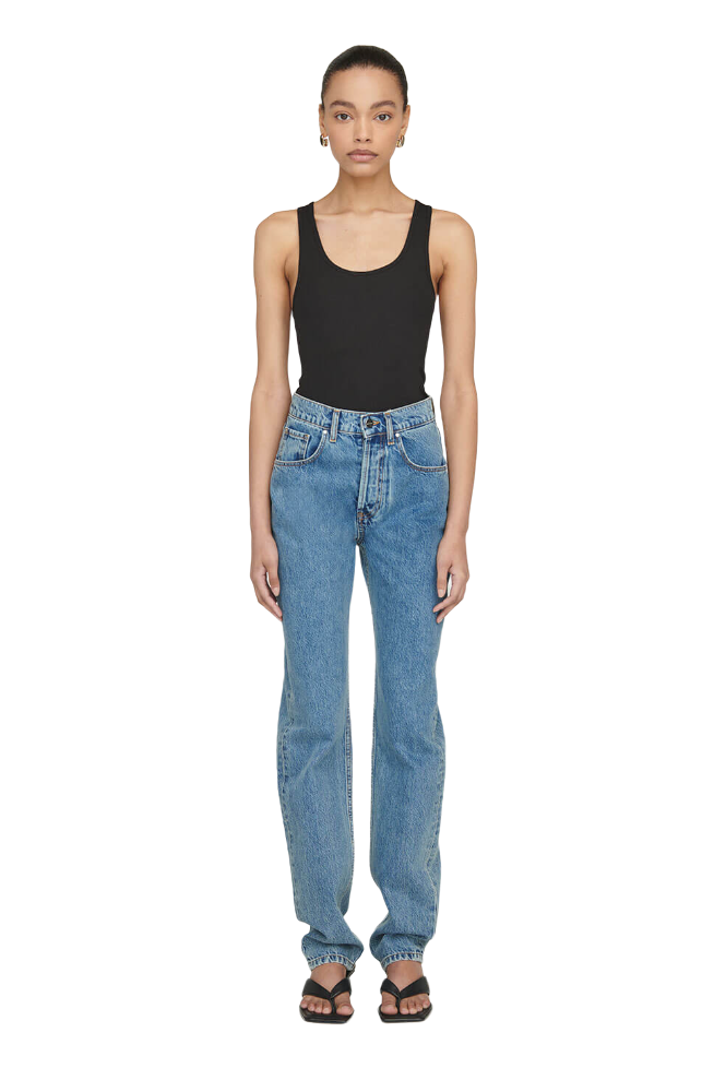 The "August Tank" from Anine Bing is?made from a lightweight rayon-spandex rib fabrication that's both soft and drapey that features a classic racerback silhouette with a scoop-front neckline.