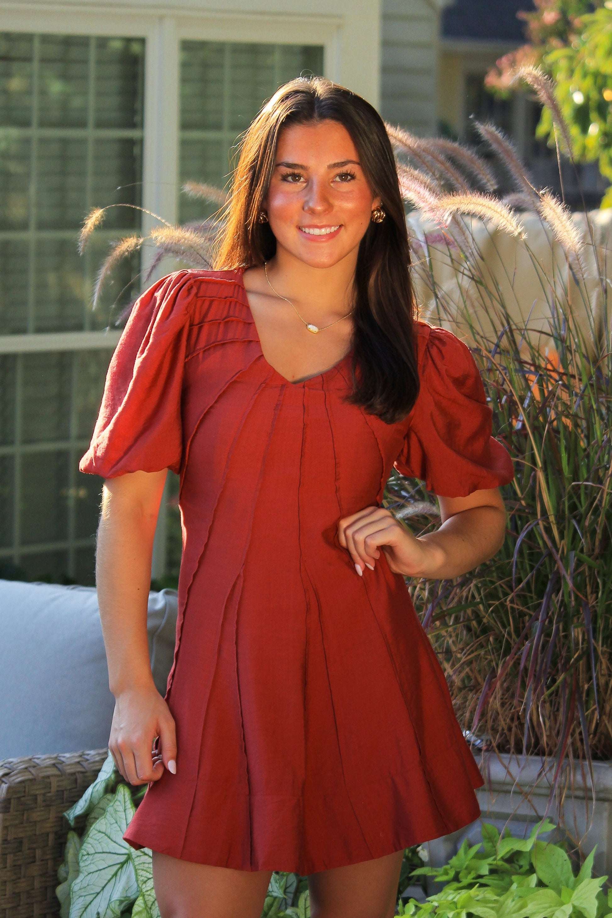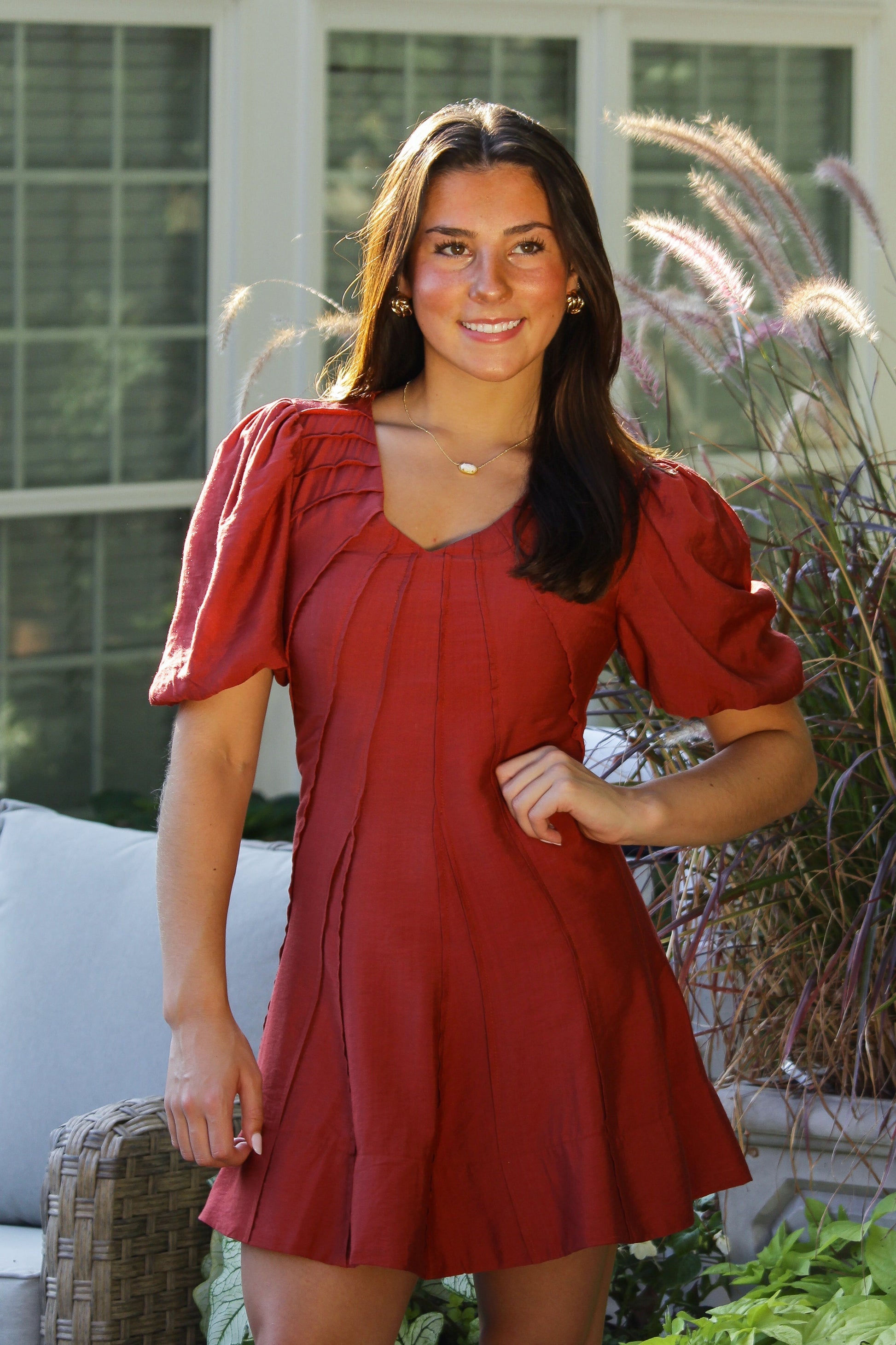 Brick Red Exposed Seam Mini Dress