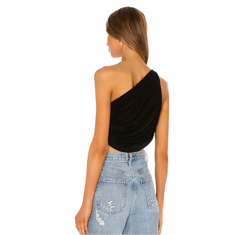 The "Diana Bra" from Norma Kamali features asymmetrical draping, shirred side and a one shoulder feature.?