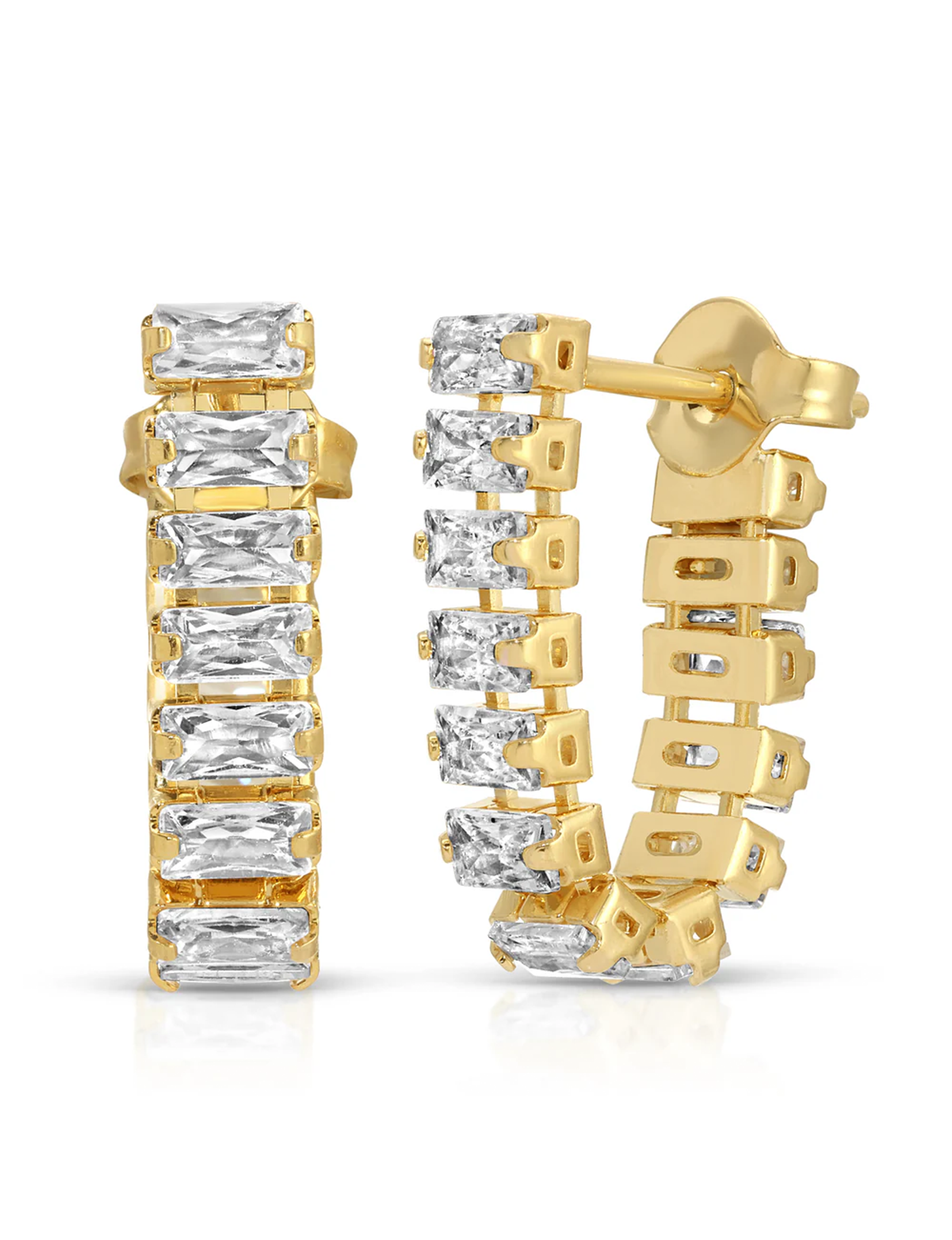 Simple and perfect at the same time! These gorgeous baguette cz hoop earrings are glam yet understated.
