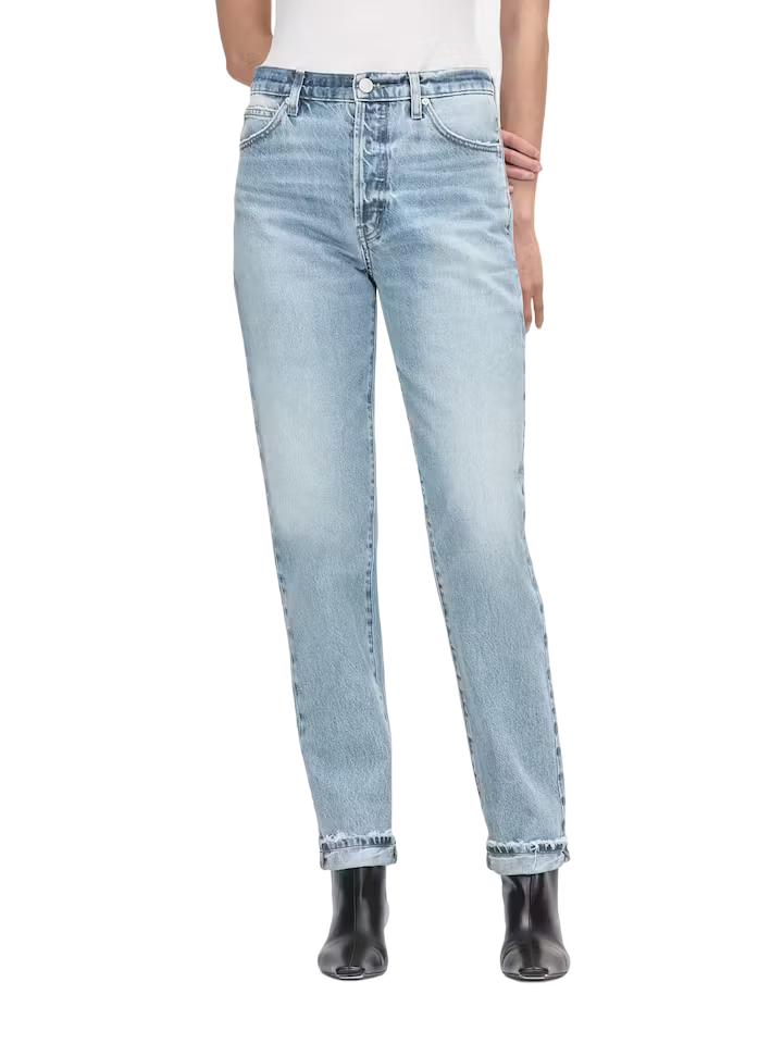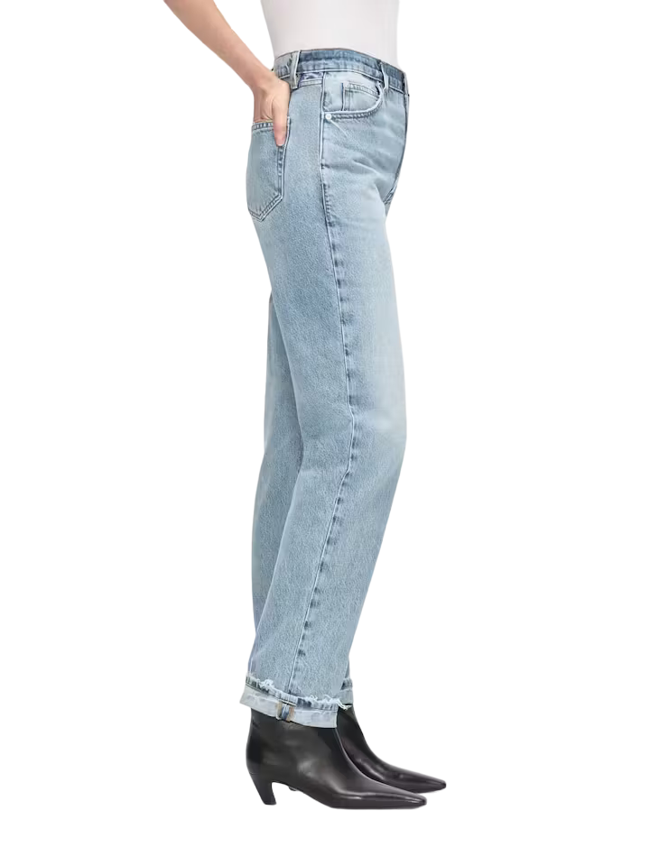 The "Mec" from Frame sits high on the waist and falls straight through the hip with a relaxed slim leg that tapers into an ankle-grazing inseam.