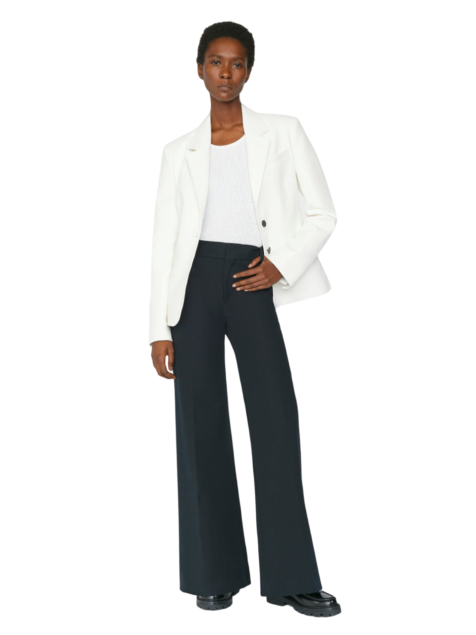 Crafted from a luxe bi-stretch fabric, the Le Palazzo Trouser from Frame provides an effortlessly polished look. Its high-rise waist gives an elongated silhouette, while the swingy wide legs offer classic sophistication. Faux back pockets complete the look for a sleek, modern take on tailored trousers.