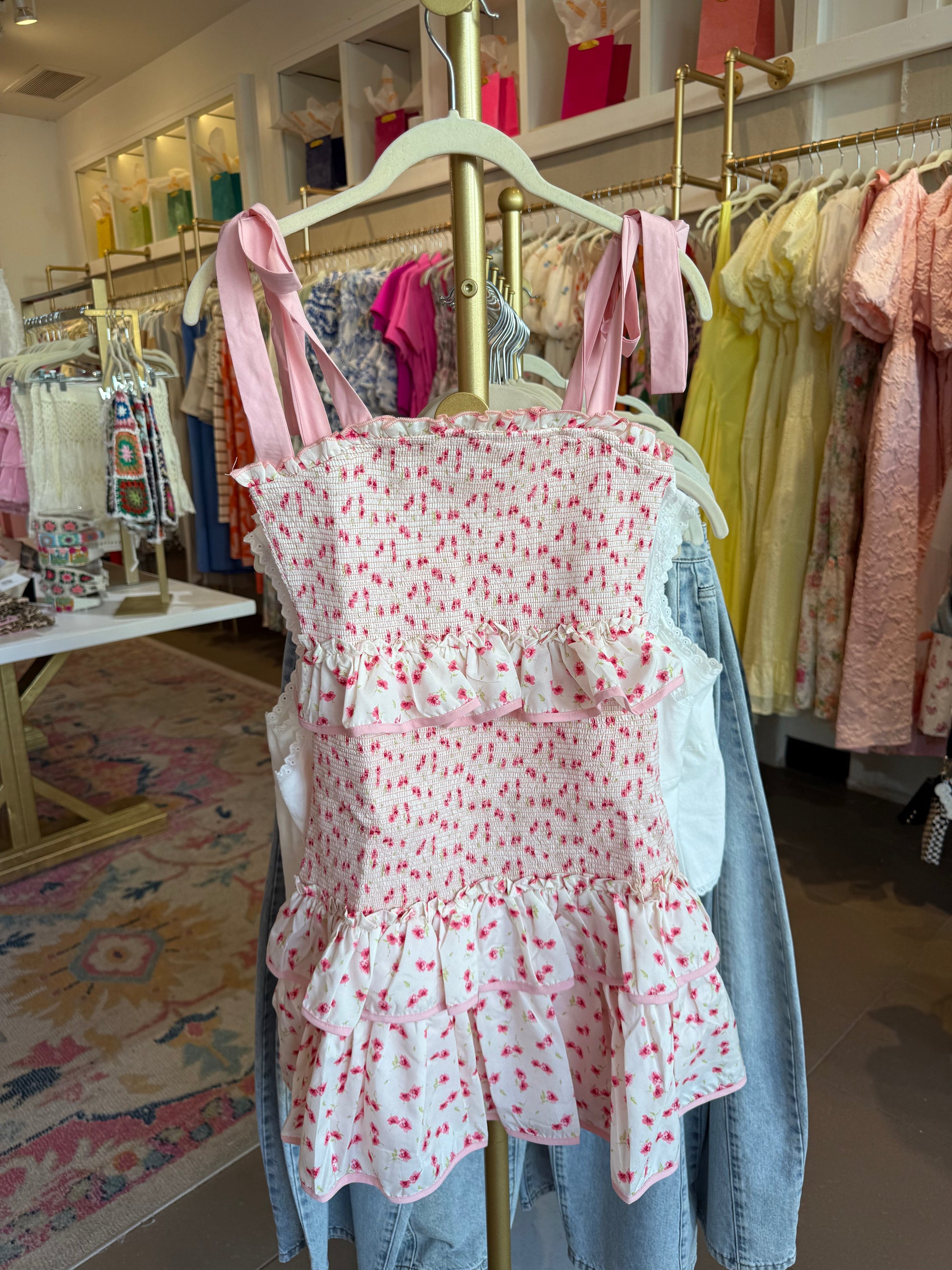 Pink Floral Smocked Mini Dress