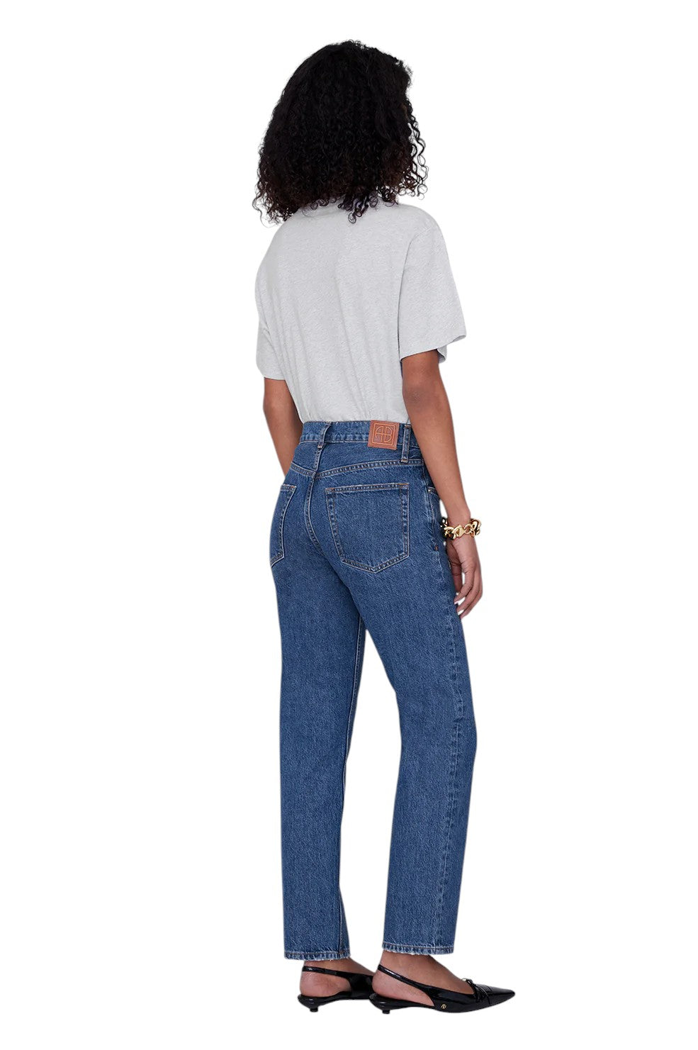 The "Lili Tee Framed Monogram" from Anine Bing is an elevated basic crafted from a lightweight 100% cotton jersey in heather grey. This timeless style features a tonal, framed ANINE BING monogram embroidered at the left chest. The boxy, relaxed fit is inspired by the perfect vintage T-shirt, with a slightly longer body than the Tiger Tee, making it a versatile wardrobe staple.