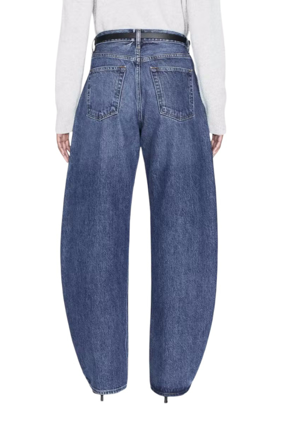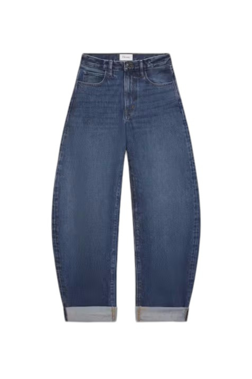 The "Bubble" from Frame is a bold interpretation of the barrel silhouette and is a must-have for your wardrobe. With a flattering high rise and curved outseam for a playful bubble effect, these jeans are designed to be cuffed at the ankle. The 2.5" cuff can be unrolled for a longer, dramatic look.