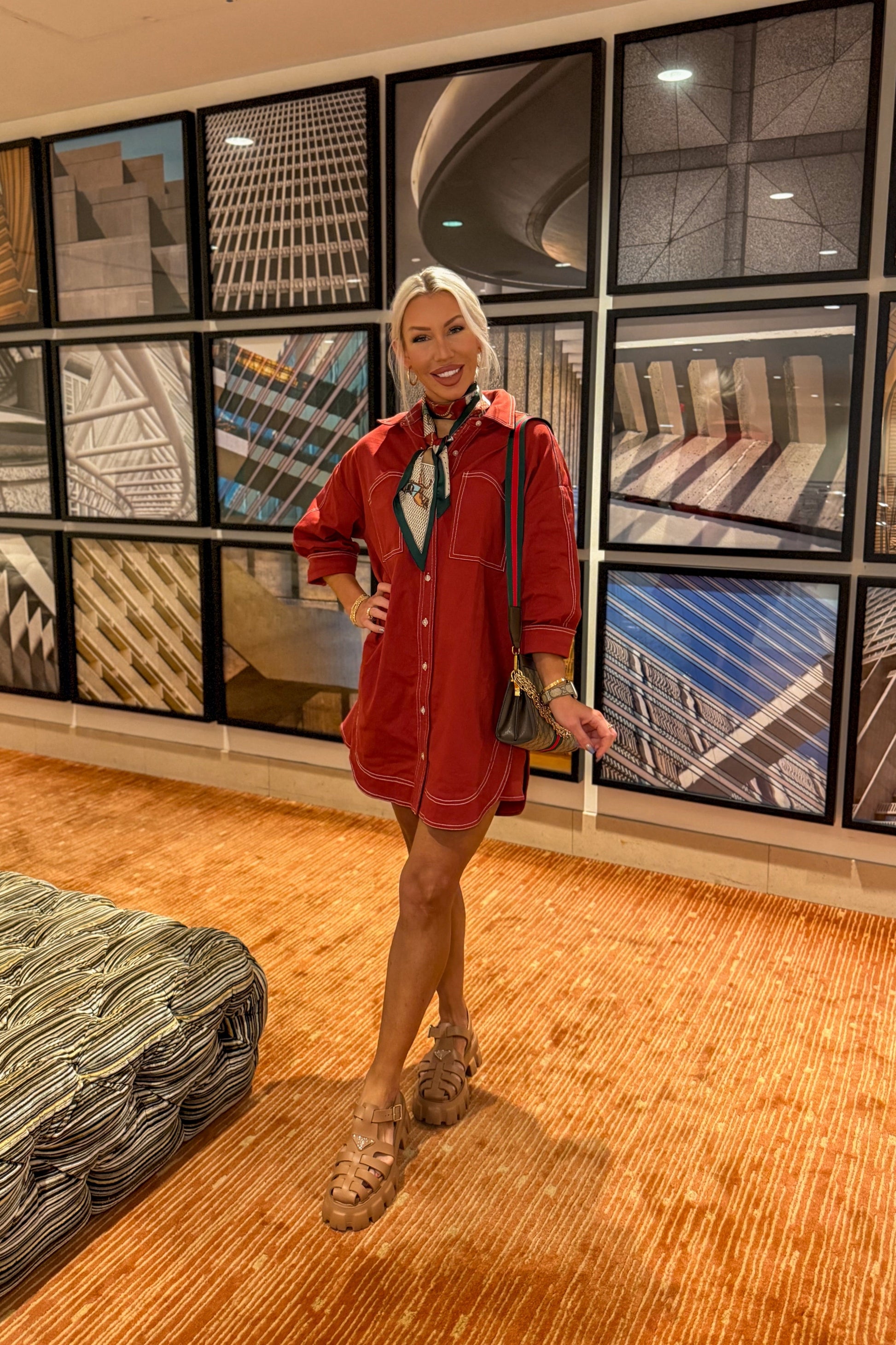 Rust Exposed Stitching Mini Dress