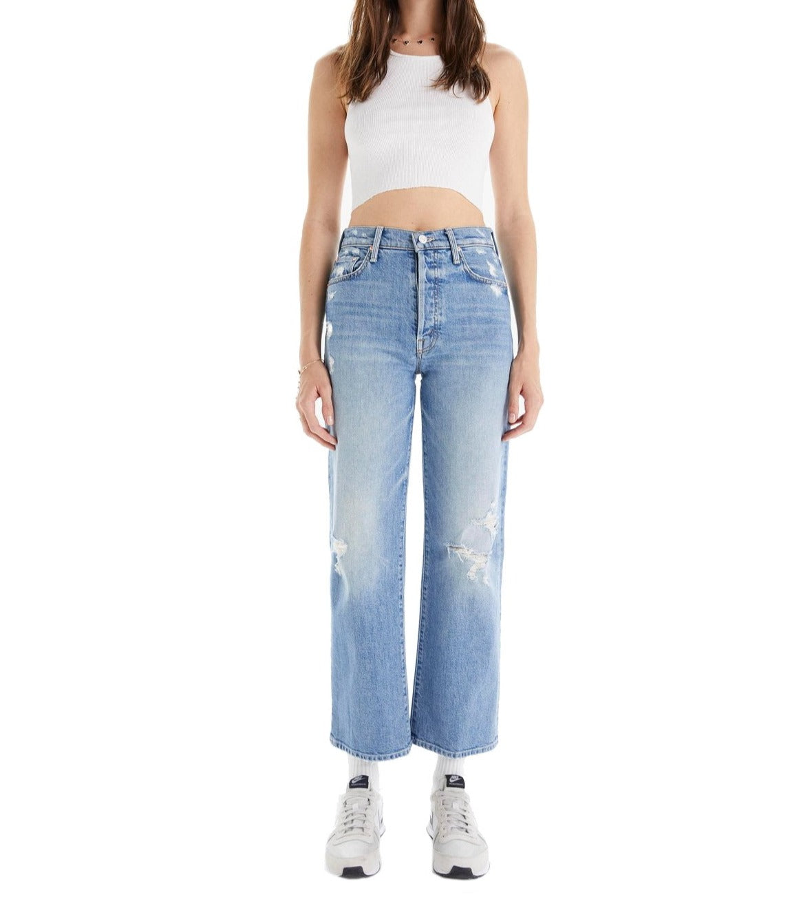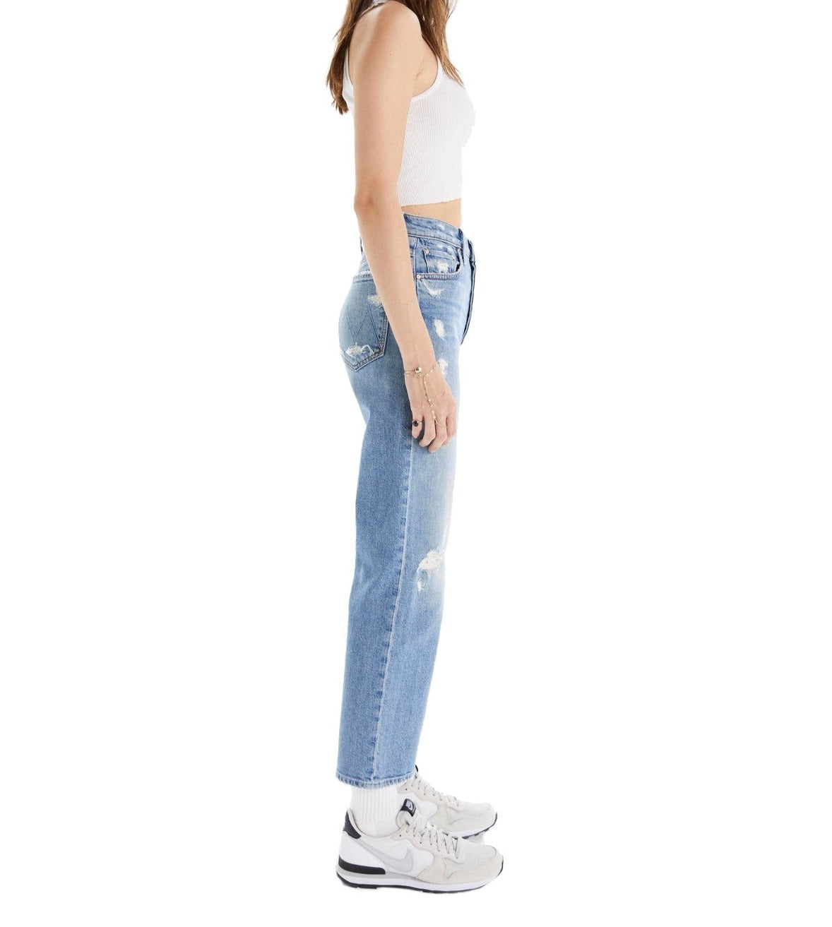 The "Rambler Ankle" Jean from MOTHER features are a super high-waisted jean with a straight leg, button fly and an ankle-length inseam.