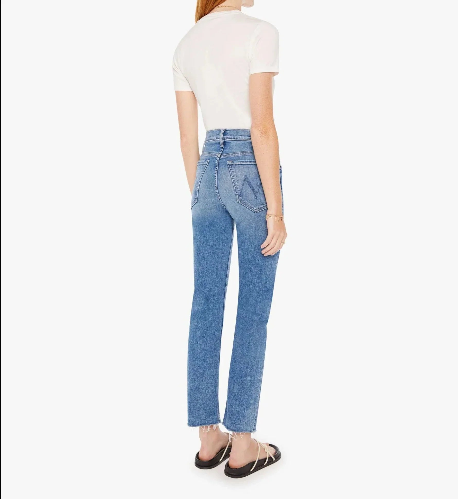 The "Tomcat Ankle Fray" from MOTHER features a straight leg, button fly, ankle-length inseam and a frayed hem.?